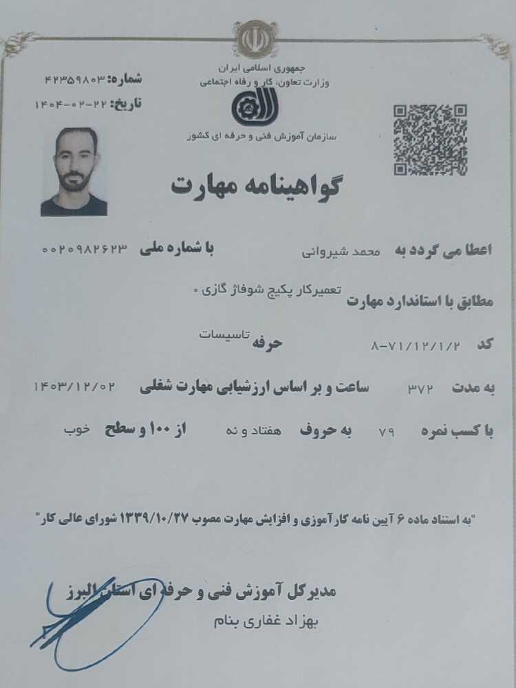 خدمت از ما احراز هویت شده خدمت از ما متخصص (دارای گواهی مهارت)