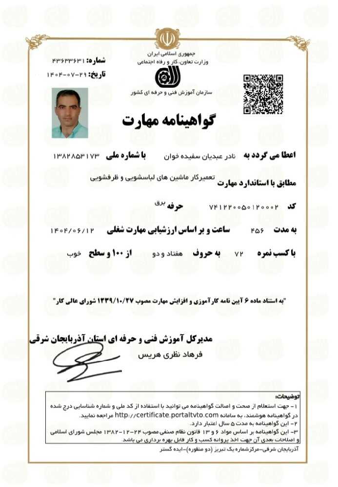 خدمت از ما احراز هویت شده خدمت از ما متخصص (دارای گواهی مهارت)