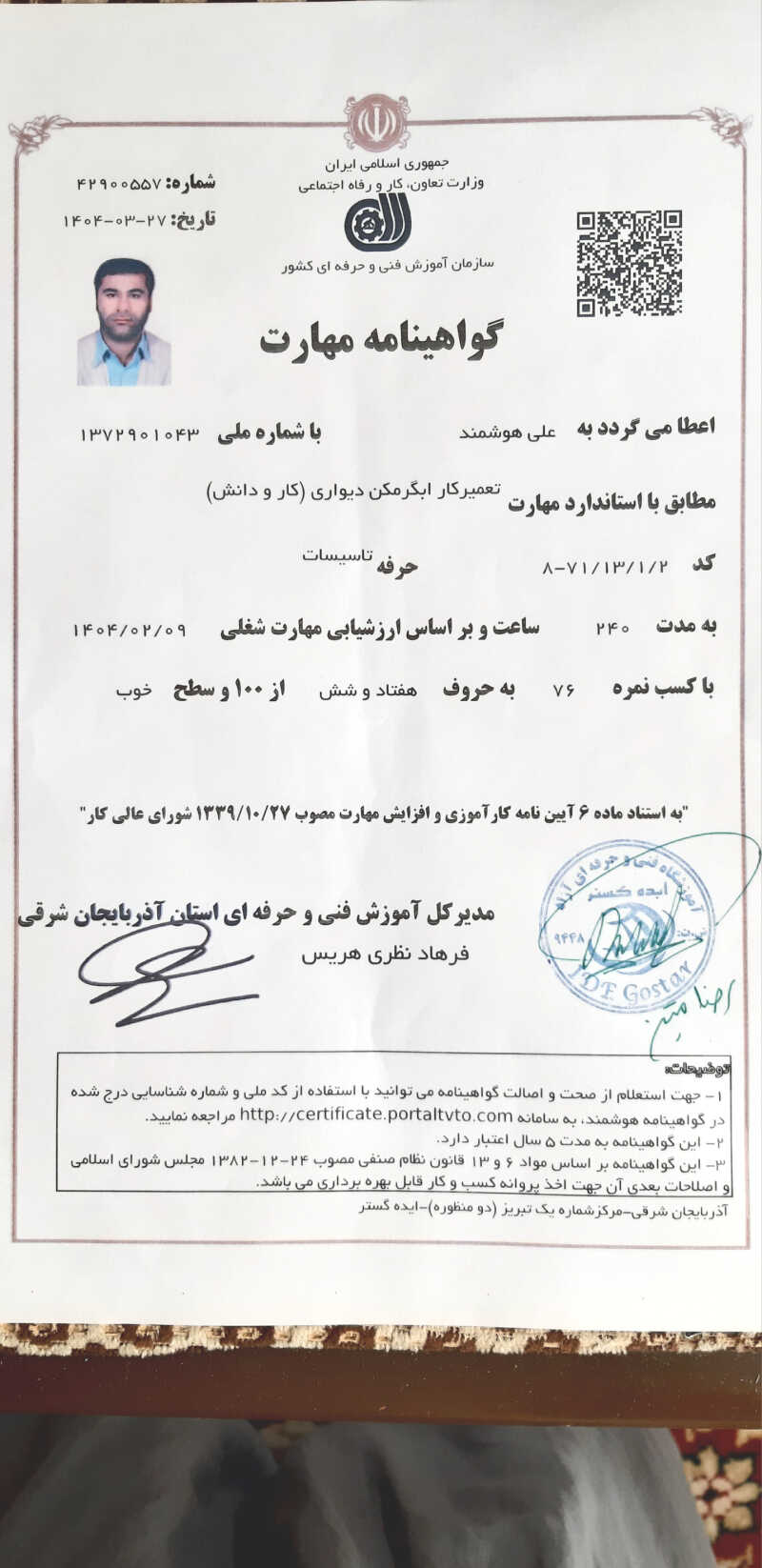 خدمت از ما متخصص (دارای گواهی مهارت)