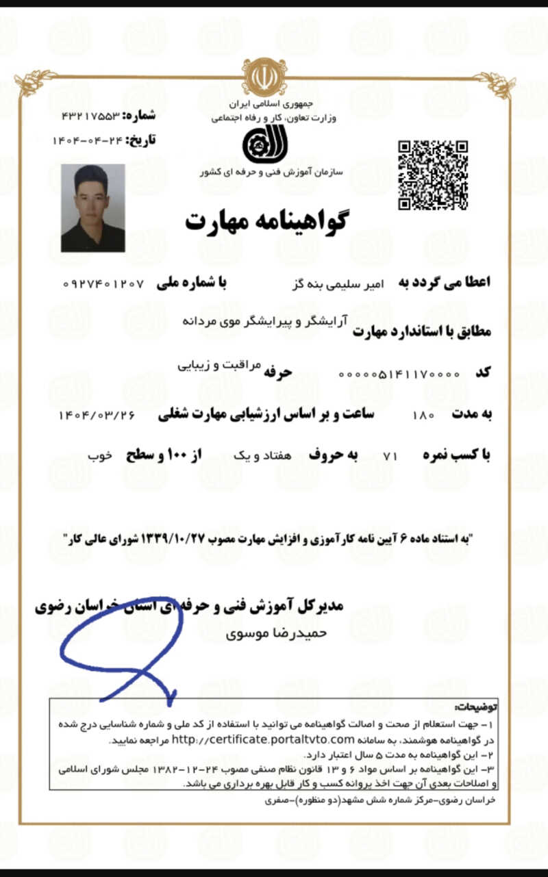 خدمت از ما احراز هویت شده خدمت از ما متخصص (دارای گواهی مهارت)