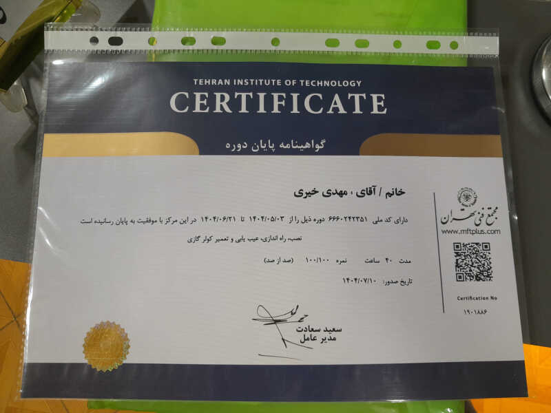 خدمت از ما احراز هویت شده خدمت از ما متخصص (دارای گواهی مهارت)