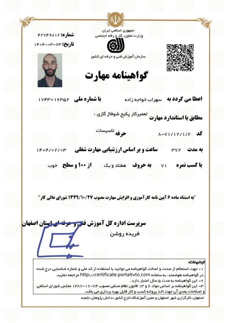 خدمت از ما احراز هویت شده خدمت از ما متخصص (دارای گواهی مهارت)