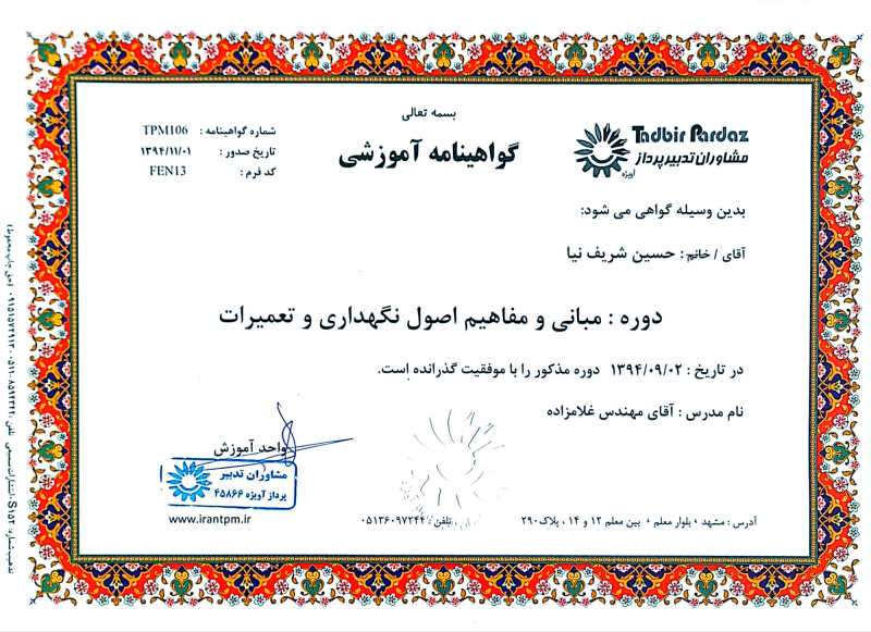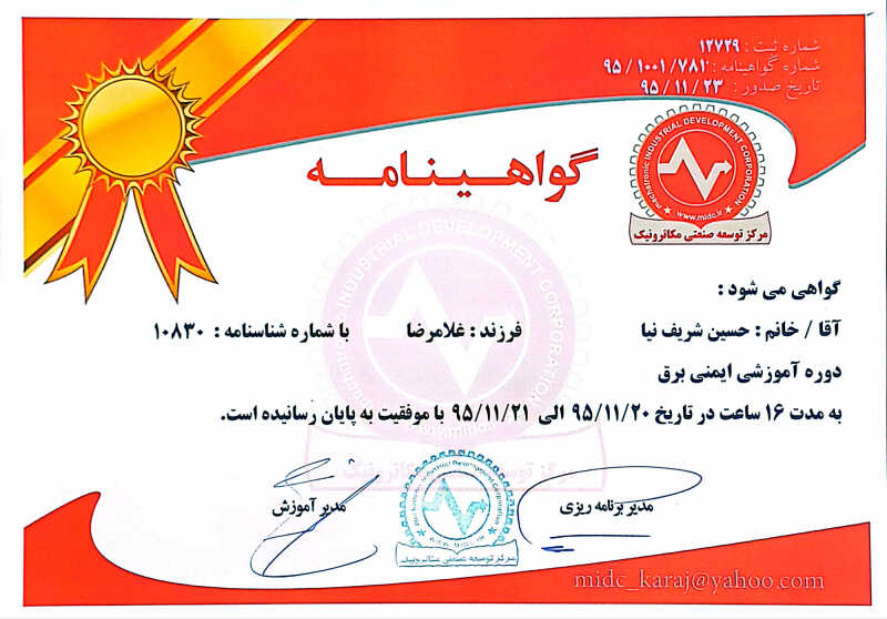 درود بر شما، حسین شریف نیا هستم مهندس تکنولوژی کنترل.دارای سابقه 28 ساله در حوزه ( برقکار صنعتی- برقکار ساختمانی- موتورخانه و لوله کشی )