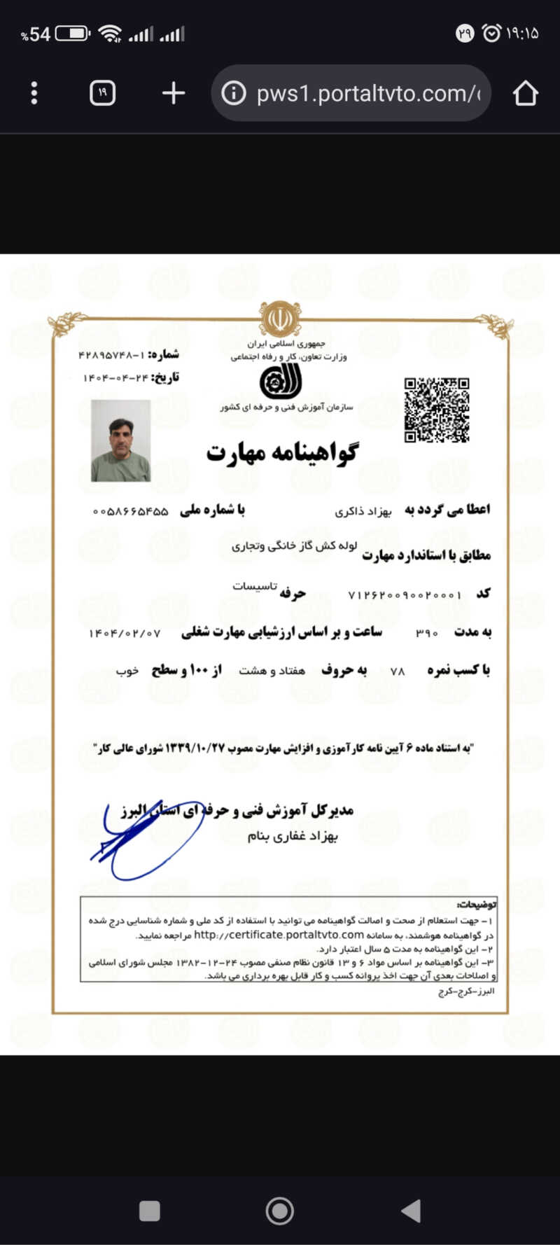 باسلام من بیشتر از بیست و دوسال سابقه کار درزمینه لوله کشی گاز فعالیت دارم طبق استاندارد شرکت ملی گاز با مدرک فنی حرفه‌ای کشور در مناطق البرز و تهران کار انجام داده میشود کار خوب قوی و تمیز