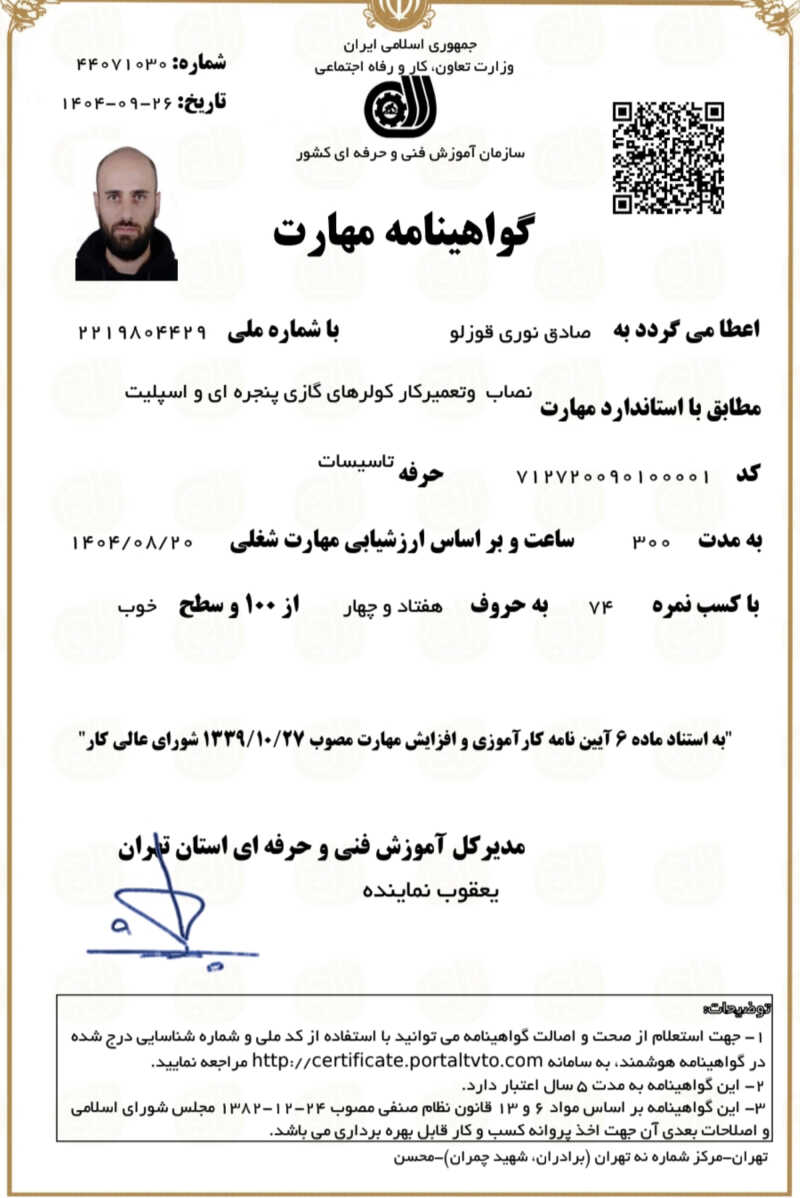 خدمت از ما احراز هویت شده خدمت از ما متخصص (دارای گواهی مهارت)