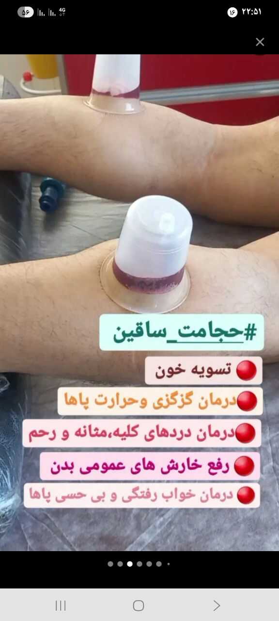 <<هو الشافی>> (انجام خدمات خدمات طب سنتی با کمترین هزینه و بالاترین کیفیت) ✅️ انجام حجامت ( عام_ساکرال_کبد_کلیه_ساقین_سر) ✅️ انجام زالو درمانی (با زالوهای یک بار مصرف و بهداشتی) ✅️ انجام بادکش د رمانی (بادکش گرم _بادکش سرد❄️) ⚠️⚠️⚠️ انجام کلیه خدمات با رعایت کامل پروتکل های بهداشتی_پانسمان اصولی استفاده از گاز استریل و عسل و تیغ یکبار مصرف انجام میشود. بیشتر