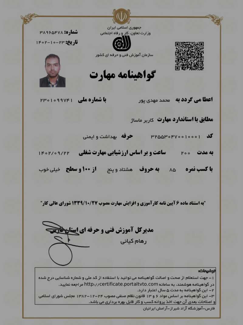 خدمت از ما احراز هویت شده خدمت از ما متخصص (دارای گواهی مهارت)