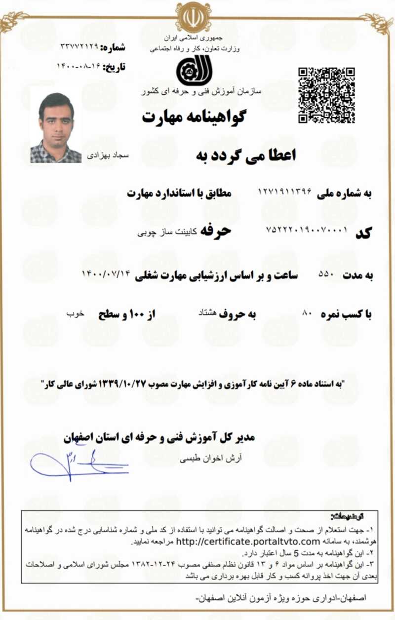 خدمت از ما احراز هویت شده خدمت از ما متخصص (دارای گواهی مهارت)