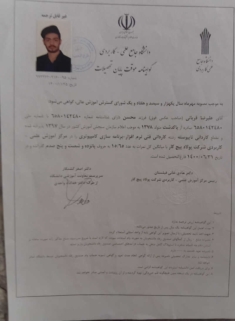 من فردی متخصص و علاقهمند به دنیای فناوری اطلاعات هستم که در زمینه کامپیوتر، طراحی وبسایت، تایپ حرفهای و نصب و تعویض ویندوز فعالیت دارم. تجربهی چندین ساله در کار با سیستمها و نرمافزارهای مختلف ب اعث شده بتوانم نیازهای کاربران را بهصورت دقیق شناسایی کرده و بهترین راهحل را ارائه دهم. در طراحی وب، تمرکزم بر زیبایی، سرعت، و کاربرپسندی است تا هر پروژه نهتنها از نظر فنی قوی باشد، بلکه از نظر بصری نیز جذابیت بالایی داشته باشد. در کنار این، انجام پروژههای تایپ سریع و دقیق، پشتیبانی نرمافزاری سیستمها و نصب انواع نسخههای ویندوز از دیگر تخصصهای من است. هدف من ارائهی خدماتی است که ترکیبی از دانش فنی، دقت، و خلاقیت باشد تا هر کاربر تجربهای مطمئن و حرفهای از همکاری با من داشته باشد. بیشتر