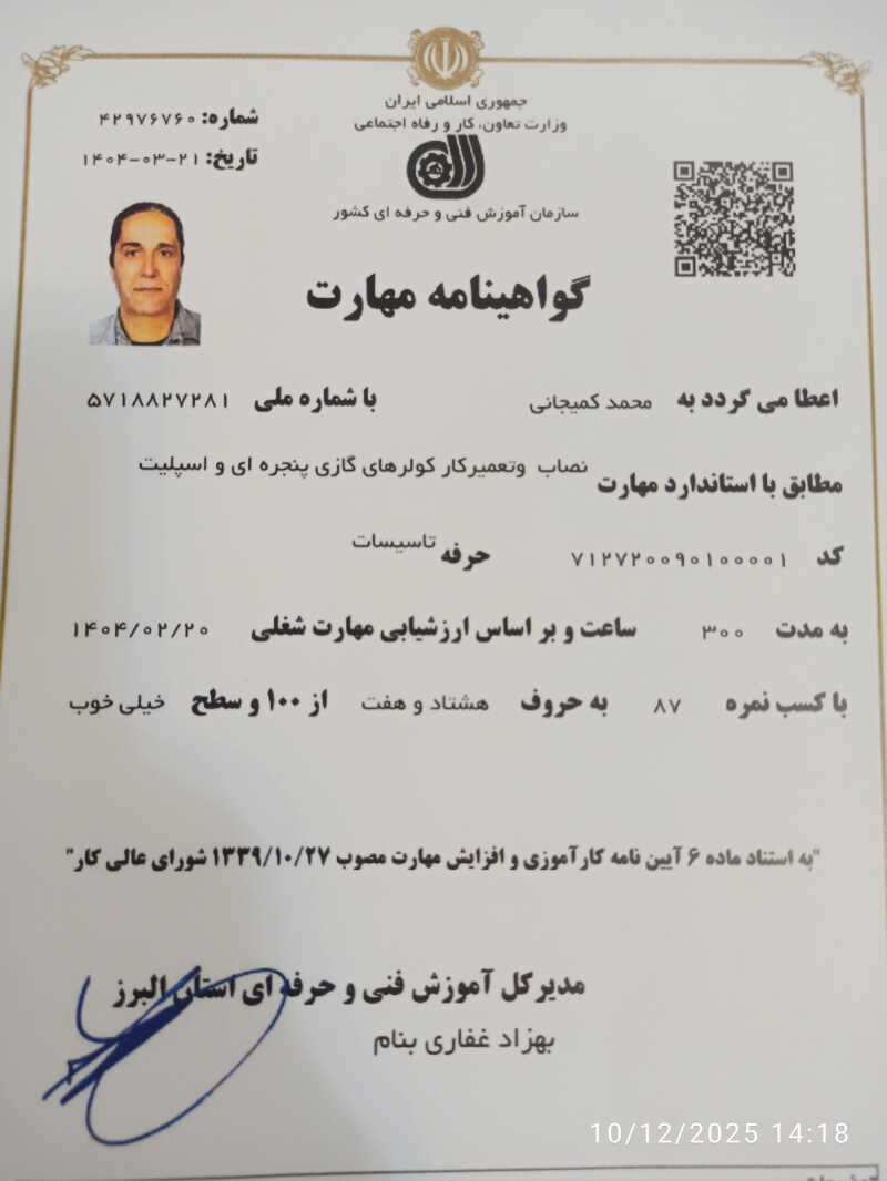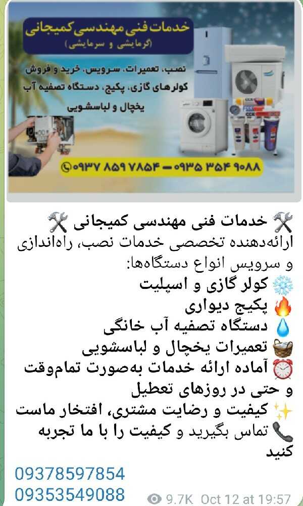 با بیش از 20 سال تجربه در زمینه تاسیسات سرمایشی و گرمایشی. دارای مدارک بین المللی .نظام مهندسی کشور.سازمان فنی و حرفه ای کشور.در سراسر مازندران به شما ارائه میدهیم. ⭐️ ما با کادری مجرب و متعهد آماده خدمترسانی به شما هستیم. ☑️ نصب و راهاندازی انواع کولر گازی و اسپلیت ☑️ تعمیرات تخصصی و عیبیابی دقیق ☑️ سرویس کامل و شارژ گاز ☑️ نصب و فروش دستگاههای تصفیه آب خانگی بهمراه گارانتی ☑️ نصب ماشین لباسشویی و ظرفشویی ☑️ نصب و راهاندازی تلویزیون پوشش سراسری در کلیه شهرهای مازندران ✅ کیفیت و رضایت شما اولویت ماست. برای هماهنگی و دریافت مشاوره رایگان، لطفاً با ما در ارتباط باشید. ☎️ بیشتر