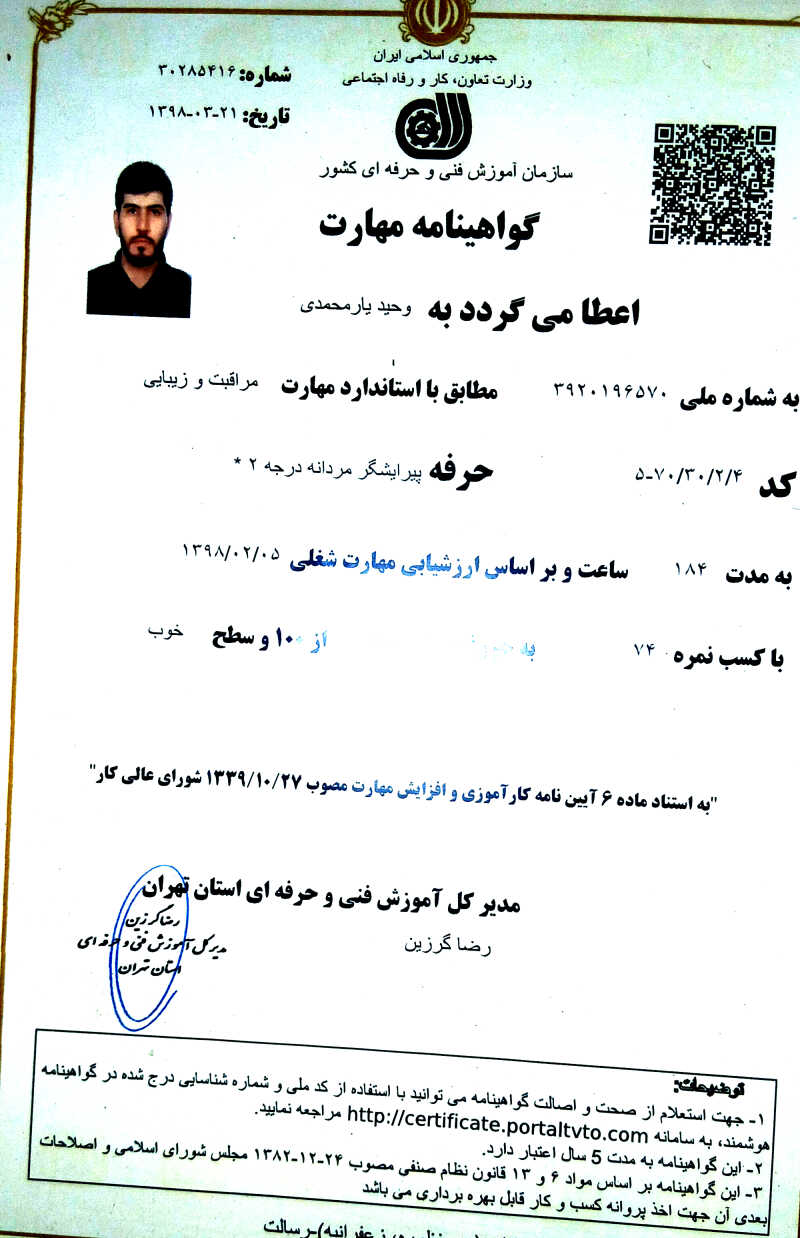 خدمت از ما احراز هویت شده خدمت از ما متخصص (دارای گواهی مهارت)