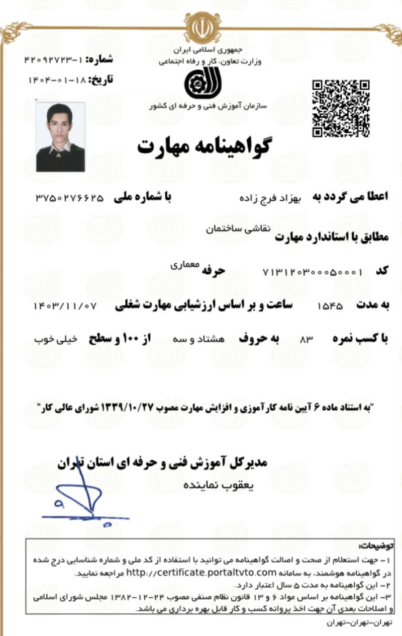 هویت این متخصص با استعلام از سازمان ثبتاحوال تأیید شده است.