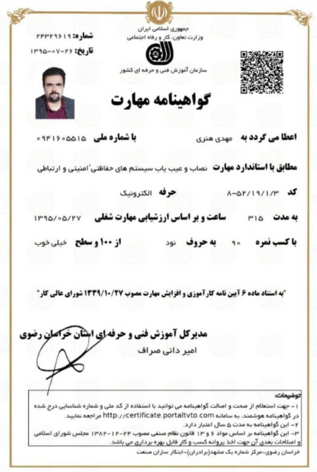 من یک متخصص چندرشتهای هستم که در حوزههای ساختمان، الکترونیک، مکانیک، فلزات، شیشه، سنگ و چوب تجربه عملی و فنی گسترده دارم. علاوه بر تعمیر و نگهداری تجهیزات خانگی و کامپیوتر، توانایی طراحی و اجرای ساز ههای ترکیبی با محوریت الکترونیک و مکانیک را دارم. ویژگی کاری من بر پایه دقت، شفافیت در فرآیند، و ارائه راهکارهای نوآورانه است. در پروژهها همیشه به کیفیت، ایمنی و کارایی توجه ویژه میکنم و تلاش دارم قطعات و سیستمها را نهتنها تعمیر، بلکه بهینهسازی و ارتقا دهم. من به طراحی و تولید قطعات اختصاصی علاقهمندم و توانایی تبدیل ایدههای پیچیده به راهکارهای عملی و قابل اجرا را دارم. روحیه کاری من بر پایه مسئولیتپذیری، سرعت در اجرا، و توجه به جزئیات شکل گرفته است. هدفم این است که هر پروژهای را به یک تجربه موفق تبدیل کنم؛ چه در تعمیر یک وسیله خانگی ساده، چه در طراحی یک سازه صنعتی پیچیده.» بیشتر