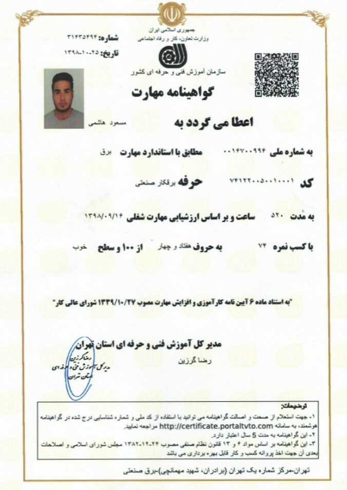 - بازدید رایگان خرید قطعات مورد نیاز تا حد امکان تلاش بر کم کردن هزینه ها دارم طبق تعرفه خدمات برق ارائه فاکتور با مهر و امضا