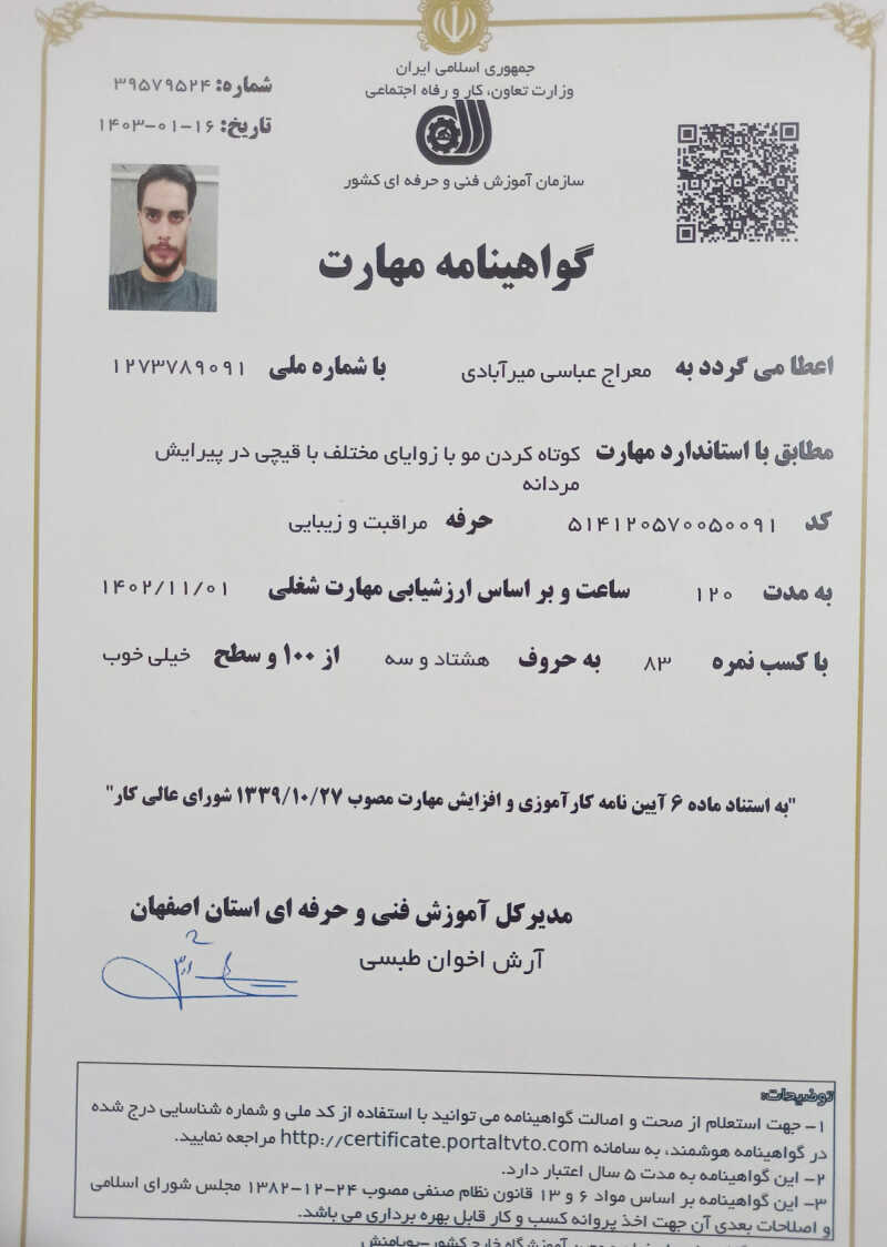 انجام کلیه خدمات ارایشگری ازجمله کوتاهی حرفه ای موی بلند و کوتاه با انواع سبک ها، فید ،رنگ مو،پاکسازی صورت،استایل مو با 7سال سابقه کار لوازم استریل شده و کاملا بهداشتی (کیفیت بالا نتیجه پایانی رضایت م شتری) بیشتر