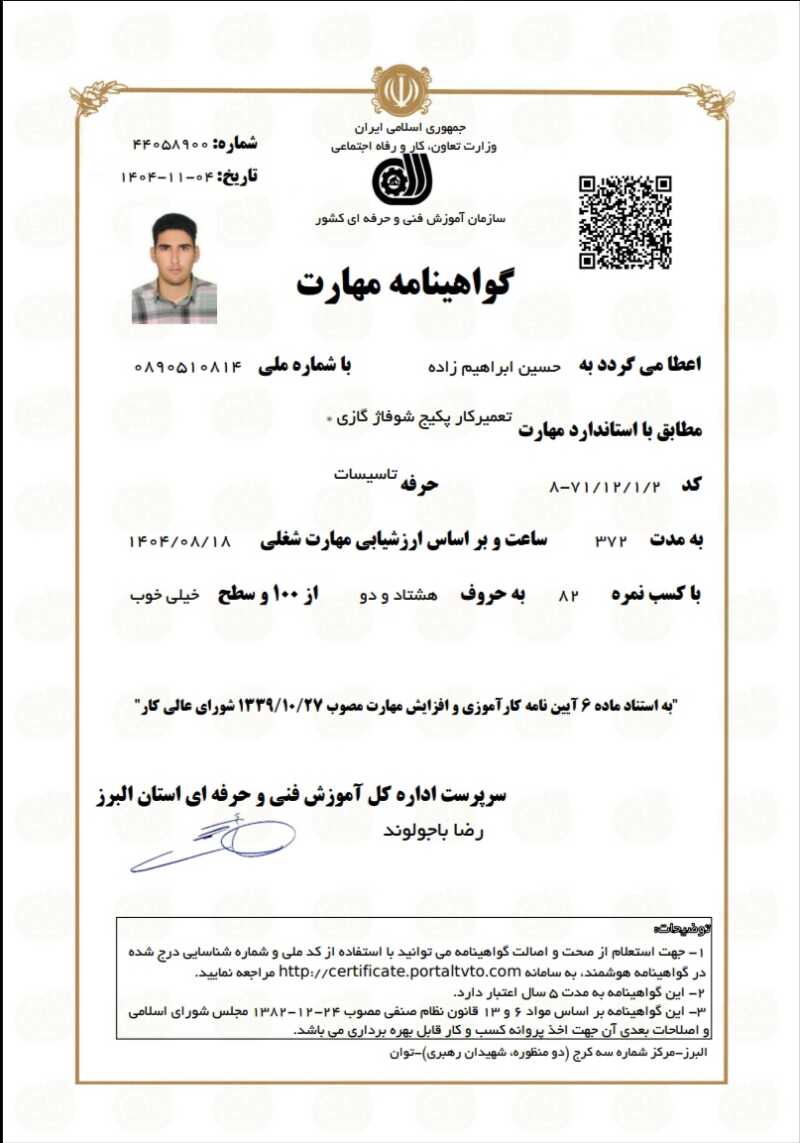 🔧 تعمیرکار حرفه‌ای پکیج و برد الکترونیکی سلام! ابراهیم زاده هستم، متخصص تعمیر انواع پکیج‌های دیواری و تعمیر بردهای الکترونیکی با تجربه‌ی کاری و رضایت مشتریان. ✔️ عیب‌یابی دقیق و سریع ✔️ استفاده از ق طعات باکیفیت ✔️ هزینه‌ی مناسب و شفاف ✔️ تضمین کیفیت کار اگر پکیج شما روشن نمی‌شود،گرمایش مطلوبی ندارد صدا می‌دهد و... ، یا اگر برد الکترونیکی دستگاه دچار مشکل شده، با خیال راحت کار را به ما بسپارید. در کوتاه‌ترین زمان در محل شما حضور پیدا می‌کنیم و مشکل را برطرف می‌کنیم. پشتیبانی و پاسخگویی سریع – انجام کار تمیز و مطمئن بیشتر
