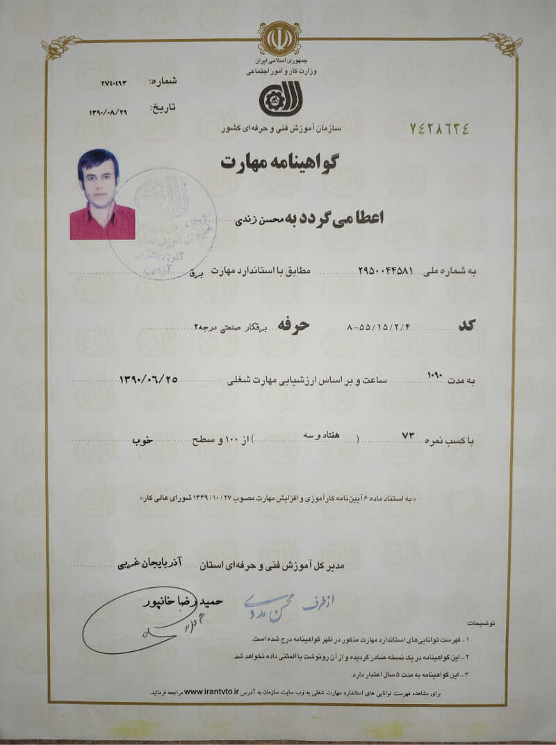 مشتریان بابت رفتار محترمانه ، کیفیت انجام کار ، مهارت و تخصص به محسن زندی امتیاز مثبت داده اند.