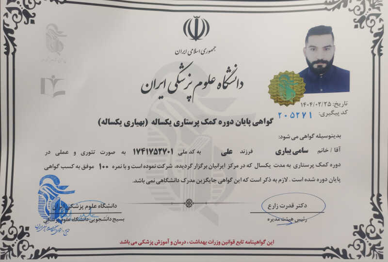 مطابقت کد ملی و شماره موبایل این متخصص با استعلام از سامانه شاهکار تایید شده است.