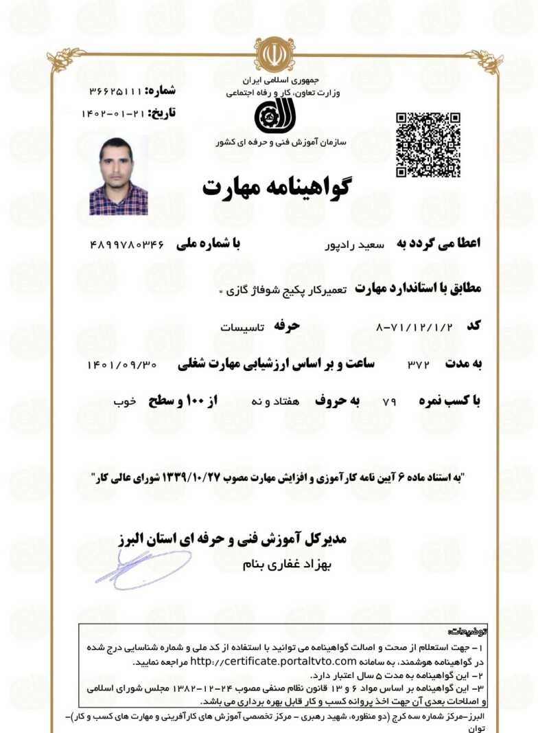 خدمت از ما احراز هویت شده خدمت از ما متخصص (دارای گواهی مهارت)