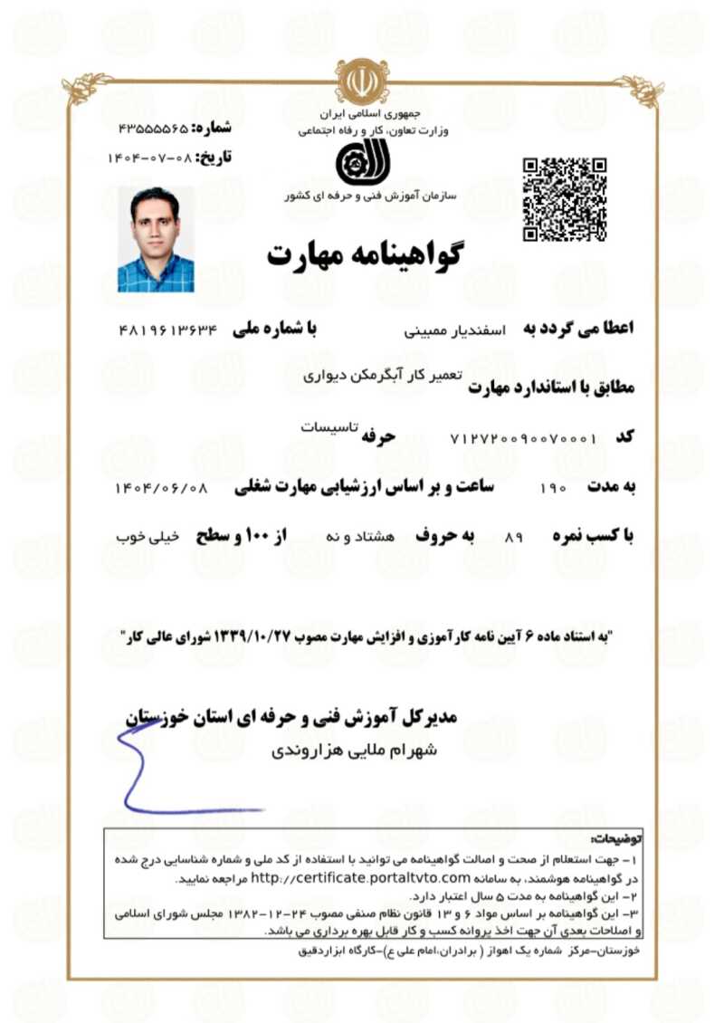 خدمت از ما احراز هویت شده خدمت از ما متخصص (دارای گواهی مهارت)