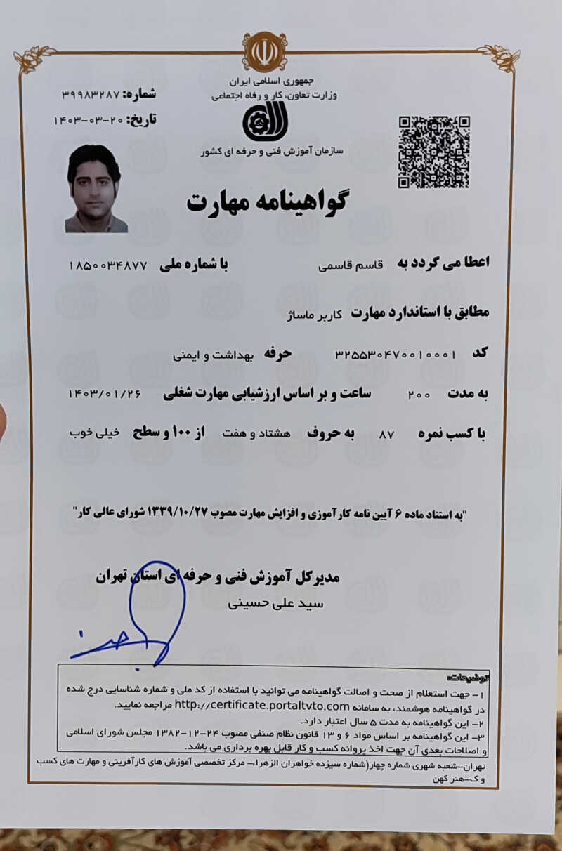 مشتریان بابت رفتار محترمانه ، دستمزد منصفانه ، مهارت و تخصص ، کیفیت انجام کار به قاسم قاسمی امتیاز مثبت داده اند.