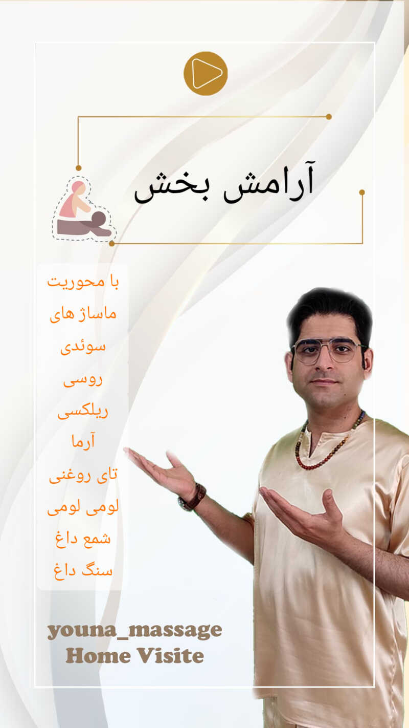 یونا ماساژ . ماساژ در منزل شما. درود بر شما . بنده از سال 1398در زمینه ماساژ شروع به فعالیت کردم و در این مدت موفق به کسب مدارک ماساژ های پزشکی ورزشی ، بازتاب درمانی ، یومی هو 4گرید ، توینا 3گرید ، سو ئدی ، روسی و گراستون ، توکسن ، تایلندی ، سنگ داغ ، رادیولوژی ، ام ار ای و بیش از 300 ساعت آموزش های آنلاین .... را جهت کیفیت و سلامتی شما عزیزان گذراندم. بنده با داشتن تخت وی ای پی انواع مهار کننده انواع روغن بنا به طبع و مزاج و ابزارآلات مناسب جهت بهبود بهبود و آرامش شما همراه خواهم داشت. شروع هزینه ها خدمات از یک میلیون دویست شروع میشود و بنا به درخواست شما و منطقه شما و جشن ها و هدایا برای دیگران سفارشی سازی خواهد شد. پکیج آرامش بخش( روغنی) ، پکیج بهبود یابی( روغنی، اصلاح مفاصل و...)، پکیج ماساژ دراگون( با دیدگاه ماساژ چینی، ژاپنی، جهت کشش) برای افراد خجالتی ...... در پکیج آرامش بخش و بهبود یابی تخت، انواع روغن، یه بار مصرف، آبزارات توکسن و .... . پکیج دراگون یک پت زیر انداز و آبزارات مخصوص ماساژ های خشک آورده خواهد شد. بابت رفت و آمد از مشتری هیچ هزینه آیی دریافت نمی گردد. بیشتر