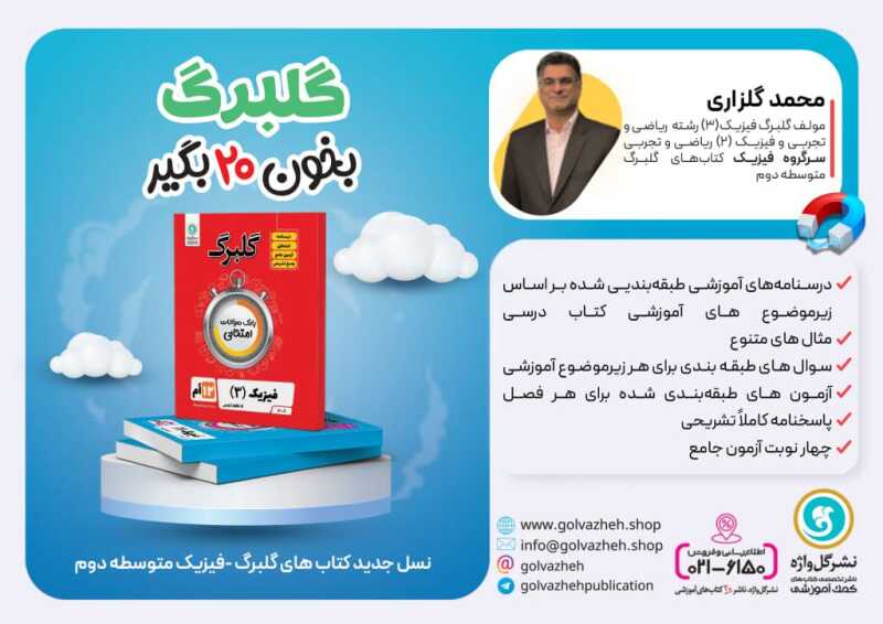 محمد گلزاری هستم. دبیر رسمی فیزیک با 30 سال سابقه تدریس فیزیک در مدارس و آموزشگاه‌های شهر تهران و حومه. مدرس مدرسه تلویزیونی. مؤلف بیش از 50 کتاب در حوزه فیزیک. طراح سوالات آزمون‌های آزمایشی. آموزش آن لاین و حضوری با بهترین کیفیت. بیشتر