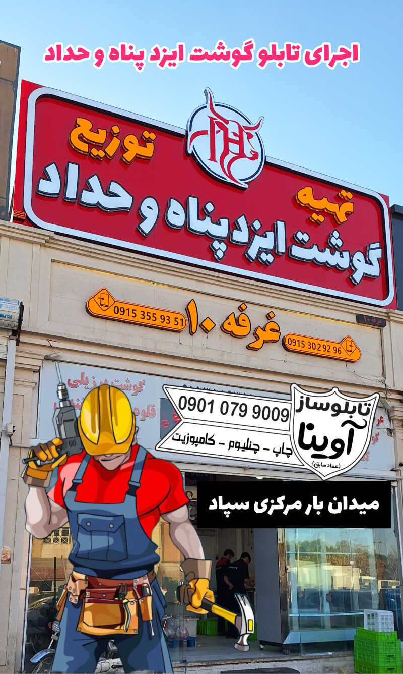 اجرای انواع تابلو حروف برجسته چنلیوم/استیل/کامپوزیت/بنر/استیکر/لایت باکس و ... متناسب با طرح دلخواه شما... طراحی انواع لوگو اختصاصی ... یا بیش از 6 سال سابقه حرفه ای در زمینه ساخت تابلو های تبلیغاتی ب ا تنوع بالا و کیفیت بالا ... بازدید و مشاوره در محل رایگان ... ضمانت کیفیت و قیمت ... دارای قرارداد هولوگرام دار معتبر اتحادیه ... بیشتر