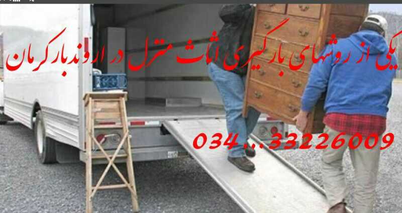 اروندبارکرمان.ازسال1390کارش رادرشهرکرمان شروع کرد وهم اکنون بعدازگذشت 15سال درسراسرکشور فعالیت دارد.....متخصص درانجام تمامی مراحل اثاث کشی ازبسته بندی تاچیدمان درمنزل_جابجایی یخچال ساید،گاوصنوق وپیانو های مکانیکی همراه بابیمه وبهترین کارگرهای کرمان..انواع خاورمبلی مسقف پتودار-انواع وانت_.مزدا_نیسان ومینی خاور.. قبول وفرستادن بار.خرده بار وکالای تجاری به تمام نقاط کشور باانواع کامیون بیشتر