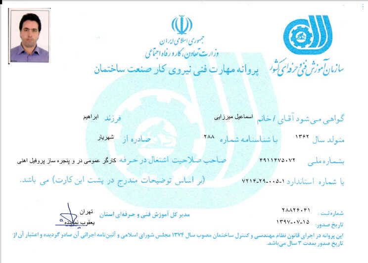 با سلام خدمت دوستان عزیز بنده بیش از بیست سال سابقه درآهنگری درب و پنجره نرده .تیرچه. اجراتیرچه اسکلت .خط آتش‌نشانی در ارگان‌هایی دولتی و خصوصی فعالیت داریم مابابوجه شما کمترین هزینه باکیفیت ترین خدما ت رو ارئه میدیم . بیشتر