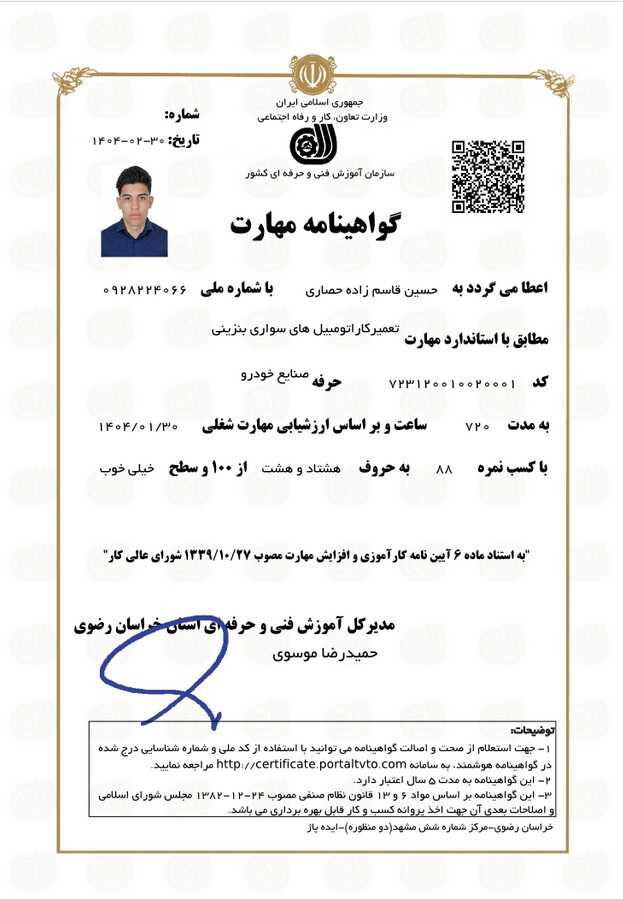 خدمت از ما متخصص (دارای گواهی مهارت)