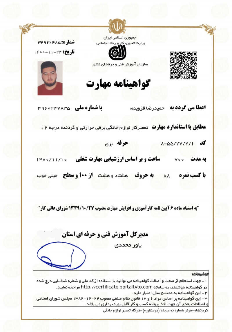 خدمت از ما احراز هویت شده خدمت از ما متخصص (دارای گواهی مهارت)