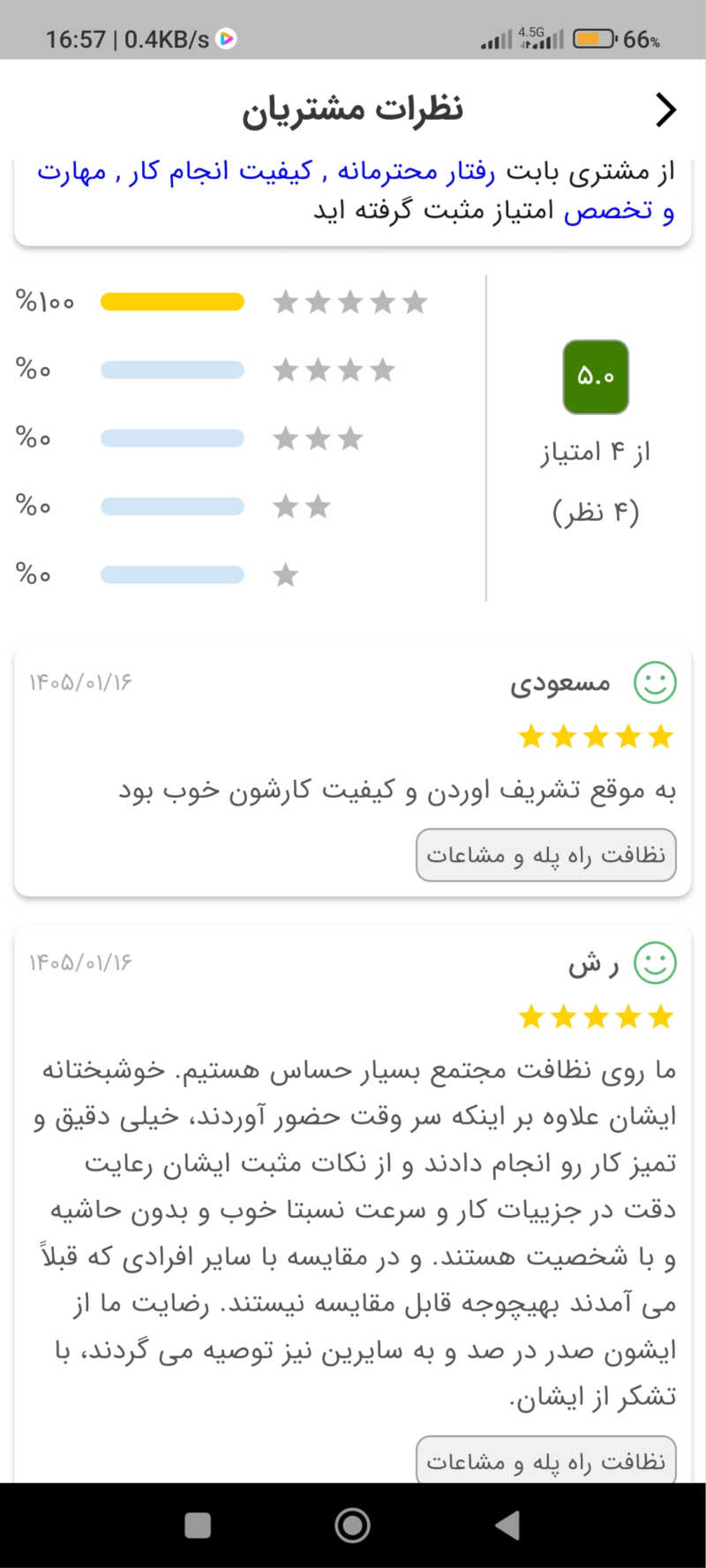 کارفرمای عزیز، بنده بیش از 12 سال تجربه انجام خدمات اختصاصی، نظافت مشاعات، زیباسازی و مرتب کردن محوطه فضای سبز و یا سایر خدمات دیگری که شاید مورد نیاز شما هم باشد را بصورت حرفه ای برای بسیاری از کارف رماها دارم. برآورد قیمتی من بر اساس توضیحات ابتدایی شما داده میشود. درمورد انواع خدماتی که ارائه می دهم، عموما باتوجه به امکانات و وسایل شما به بهترین حالت ممکن اقدام میکنم، اما هزینه افزایش حجم و یا ساعت کاری و یا استفاده از مواد مصرفی و ابزارهای حرفه ای مورد نیاز جهت انجام پروسه ای که شاید شما نیز به آن نیاز داشته باشید و توسط خود من باید تهیه گردد، قابل محاسبه و مذاکره است. بنابراین پیشنهادم اینه قبل از شروع، ابتدا پیرامون کاری که میخواهید برای شما انجام بشود یک گفتگوی کوتاهی باهم داشته باشیم، گاهی اوقات پس از گفتگو، با توجه به نیازها و شرایط طرفین، انتخاب و تصمیم گیری نیز متفاوت میشود! از مزایای این همکاری مشاوره رایگان، انجام حرفه ای کارها و رضایت و تداوم آن در آینده است و چنانچه مسئولیتی را بپذیرم آنرا به بهترین شکل ممکن برای شما انجام خواهم داد. در انتها منتظر پیام گرم شما هستم. بیشتر