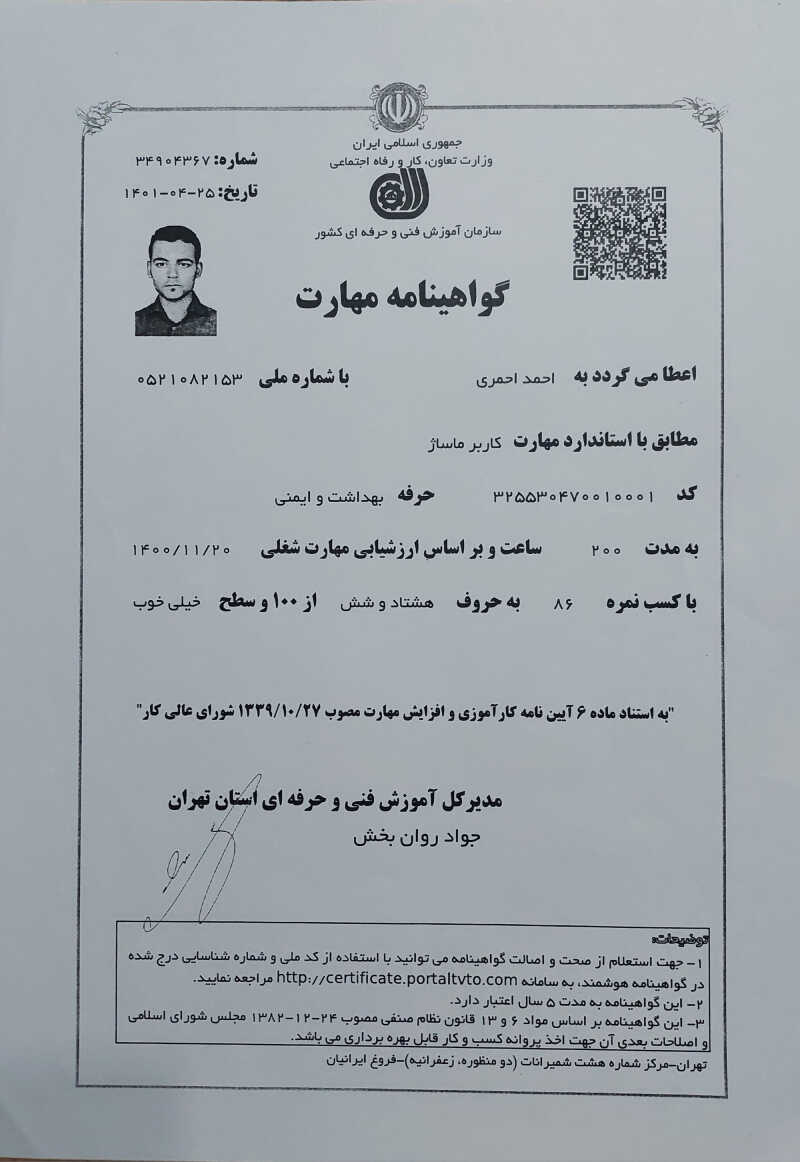 خدمت از ما احراز هویت شده خدمت از ما متخصص (دارای گواهی مهارت)