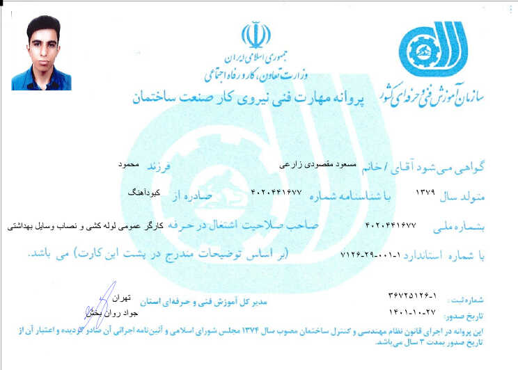 خدمت از ما احراز هویت شده خدمت از ما متخصص (دارای گواهی مهارت)