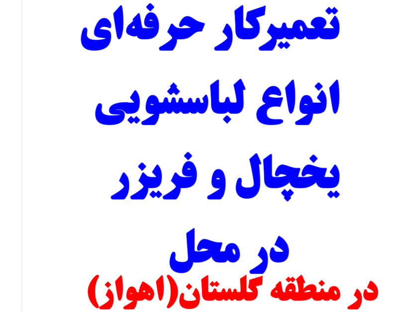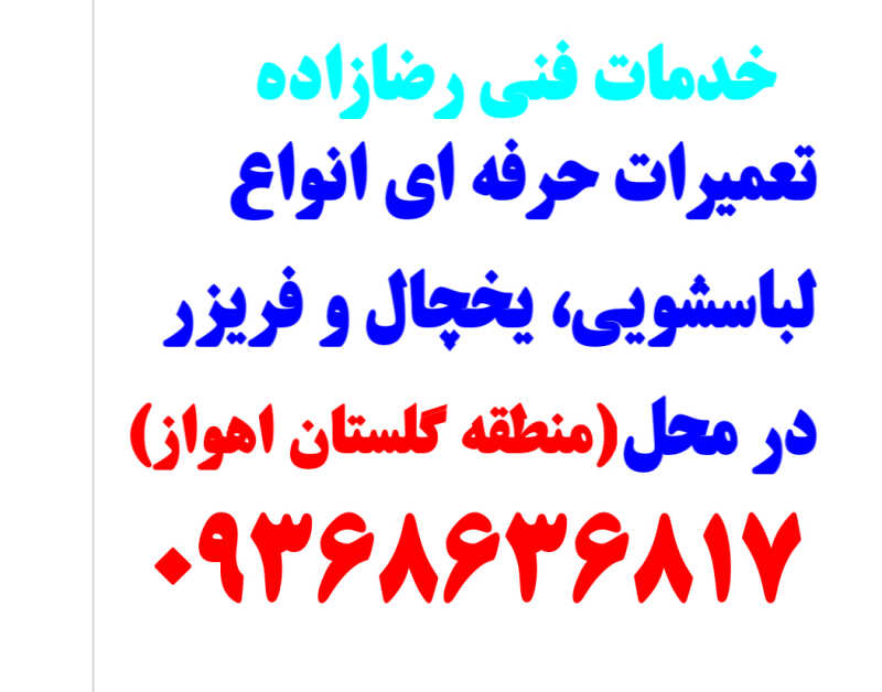 ***** کیفیت کار تنها یک شعار نیست، آغاز یک تعهد است. ***** *****ایشان نصاب و تعمیرکار تخصصی لوازم برقی، لباسشویی، یخچال و فریزر از سال هزار و سیصد و هشتاد و نه تاکنون می باشد و به طور حرفه ای به تعمی ر لباسشویی و یخچال(سامسونگ ، اِل جی و سایر ) مشغول و دوره های مورد نیاز را گذرانده و تاکنون در بیشتر کارها موفق بوده است، یکبار از خدمات ایشان استفاده کنید تا با آسایش و اطمینان خاطر از لوازمات برقی تعمیر شده تان استفاده کنید. مهم **** از قطعات پک شده و دارای هلوگرام کارخانه استفاده می شود.**** * تعویض بلبرینگ و سه نظام انواع لباسشویی با کیفیت بالا در محل * تعویض سه نظام و بلبرینگ انواع لباسشویی با کیفیت بالا در محل مژده مژده *** تعویض بلبرینگ و سه نظام در محل *** **** نصب تصفیه آب خانگی به همراه آموزش **** *** نصب و آموزش به همراه ویدئوها و جزوات مربوط به هر دستگاه *** از این طریق قبلاً از انتخاب شما سپاسگزاریم. خدمات فنی رضازاده بیشتر