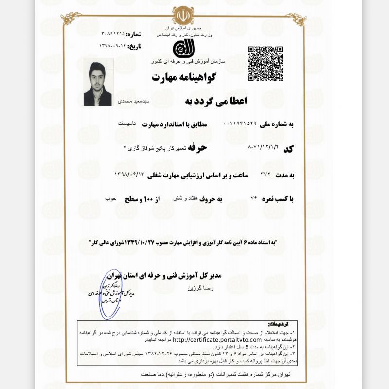 خدمت از ما احراز هویت شده خدمت از ما متخصص (دارای گواهی مهارت)