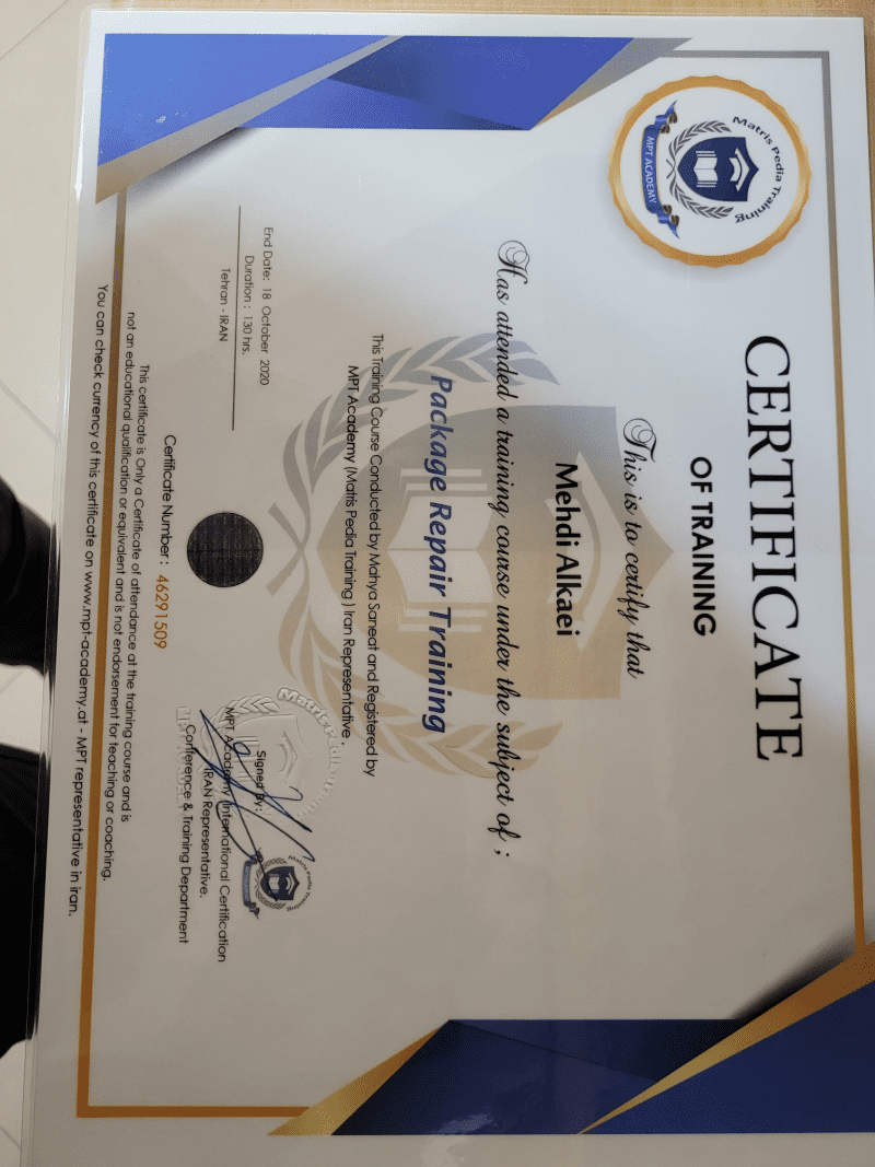 خدمت از ما احراز هویت شده خدمت از ما متخصص (دارای گواهی مهارت)