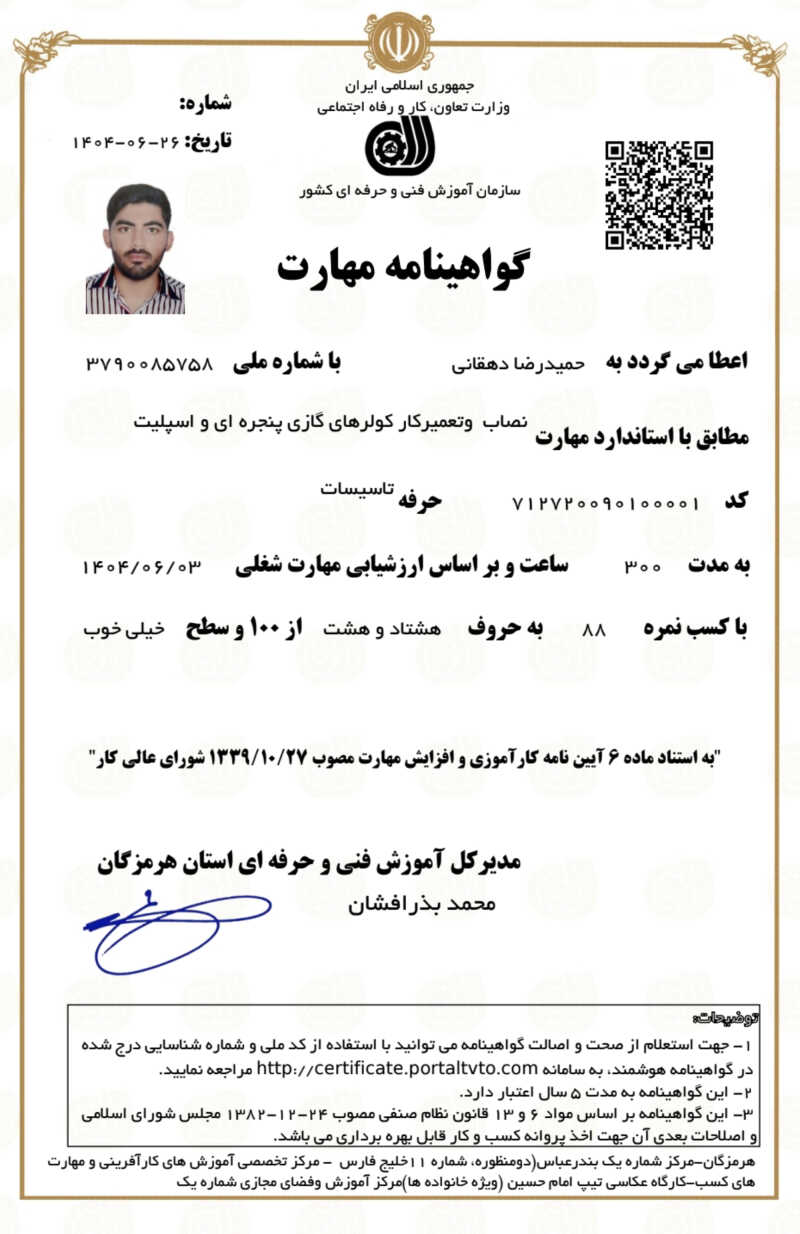 خدمت از ما احراز هویت شده خدمت از ما متخصص (دارای گواهی مهارت)