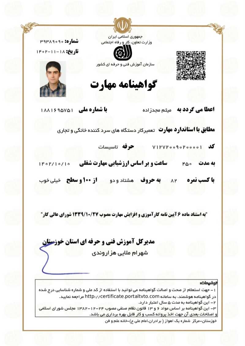 انجام کلیه خدمات فنی و برودتی شامل : ⏩ تمامی سیستم های تهویه مطبوع (کولر های اسپلیت و پنجره ای، ایرکاندیشن های اداری و صنعتی) ✅ نصب ✅ سرویس ✅ تعمیرات ✅ جابجایی ✅ رفع نشتی و گازگیری ✅ شستشوی سیکل تبری د ✅ تعمیر و تعویض موتور 🔴 نشتیابی با استفاده از دستگاه نشت یاب الکترونیکی Mastercool ساخت آمریکا ⏩ انواع یخچال ، فریزر ، آبسردکن ✅ رفع نشتی و گازگیری ✅ تعویض اواپراتور و کندانسور ✅ رفع اشکال از سیستم برفک زدایی ✅ تعویض کمپرسور و شستشوی سیکل تبرید ✅ جایگزین کمپرسور تکفاز به جای کمپرسور اینورتر همراه با تبدیل برد و حفظ سیستم کنترل و نمایشگر دستگاه در انواع یخچال ، فریزر ، دوقلو ، ساید/بوش/سامسونگ/ال جی/دوو/اسنوا/الکترواستیل/پارس/هیمالیا/امرسان/مدیا/سونیا/وست پوینت... ⏩ ماشین لباسشویی تمام اتوماتیک برطرف کردن انواع اشکالات شامل : ✅ عدم آبگیری ✅ آبگیری زیاد ✅ آبریزی حین کار ✅ لرزش در حین کار ✅ عدم کارکرد صحیح ✅ خاموشی کامل برد در انواع ماشین لباسشویی/بوش/سامسونگ/ال جی/دوو/اسنوا/پاکشوما/کنوود/توشیبا و ... 💫بیش از 10 سال سابقه کاری و استفاده از ابزار و تجهیزات استاندارد بیشتر