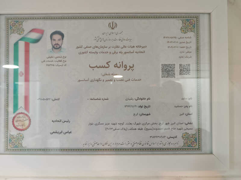 شرکت فنی مهندسی حامیان آسانبر البرز مزایای همکاری با ما در خصوص سرویس اسانسور *رفع خرابی اسانسور شما در همان روز *داشتن انواع قطعه و معطل نشدن مشتری برای خرید قطعه *رفع خرابی حتی در روز های تعطیل *خ وش قول بودن و خوش انصاف بودن در اجرت و فروش قطعه با سلام بنده با بیش از 10 سال تجربه کاری بصورت تخصصی در بحث اسانسور و پله برقی دارای مدرک کارشناسی اسانسور سازی و پله برقی و مهندسی الکترونیک صنعتی و همینطور مدارک نصاب،سرویسکار،تعمیرکار تخصصی اسانسور از سازمان فنی حرفه ای استان البرز میباشم تخصص بنده در راه اندازی آسانسور و سرویس نگهداری و تعمیرات اسانسور هست نصب صفر تا صد هر نوع اسانسور اعم از هیدرولیک ،گیرلس، روملس و کششی بازسازی انواع اسانسورتعمیرات موتورگیربکس با ضمانت سرویس و نگهداری ماهیانه و جنرال سرویس تعمیرات تخصصی اسانسور با ضمانت فروش قطعات و لوازمو... تعویض تراول ، سیم بکسل ، تابلو فرمان و... دارای مجوز رسمی از اتحادیه کشوری آسانسور و پله برقی آسانسور قلب ساختمان است و مسئولیتی سنگین برای مدیر ساختمان لطفا گول قیمت های پایین و بی اساس رو نخورید بیشتر