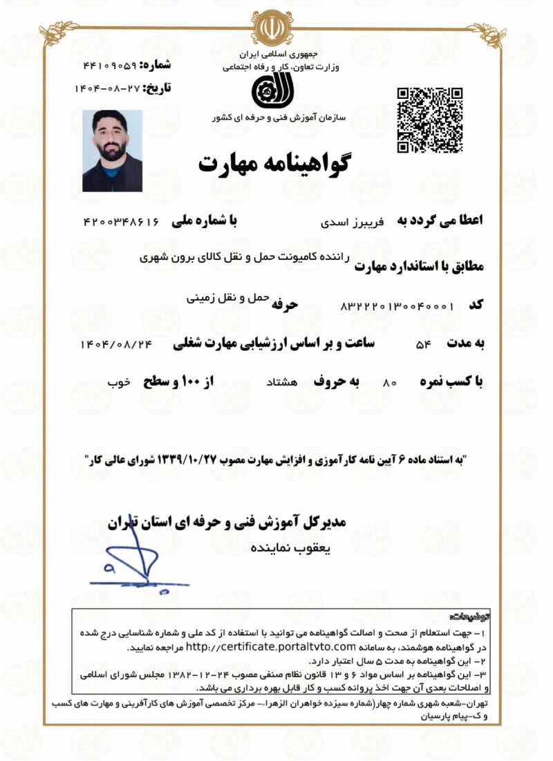 مشتریان بابت رفتار محترمانه ، کیفیت انجام کار ، مهارت و تخصص ، دستمزد منصفانه ، خوش قولی به فریبرز اسدی امتیاز مثبت داده اند.