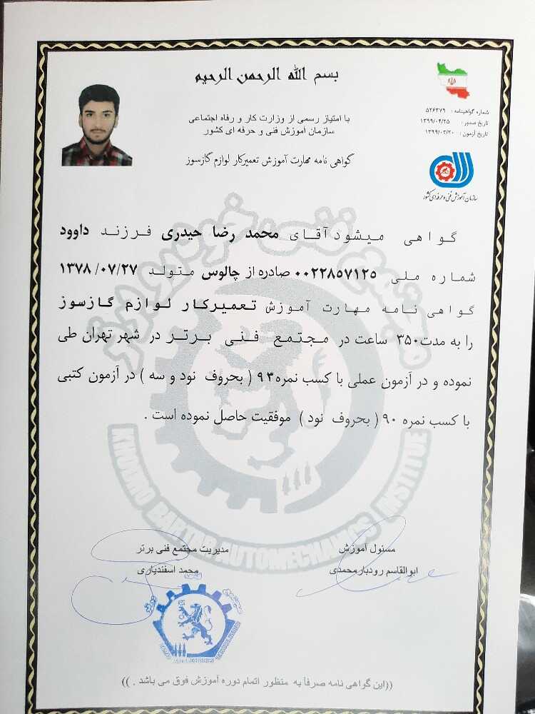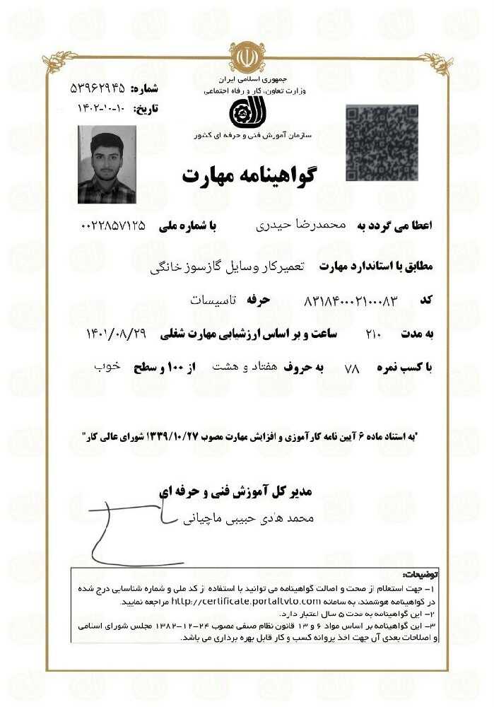 مشتریان بابت رفتار محترمانه ، دستمزد منصفانه ، مهارت و تخصص ، خوش قولی ، کیفیت انجام کار به محمدرضا حیدری امتیاز مثبت داده اند.