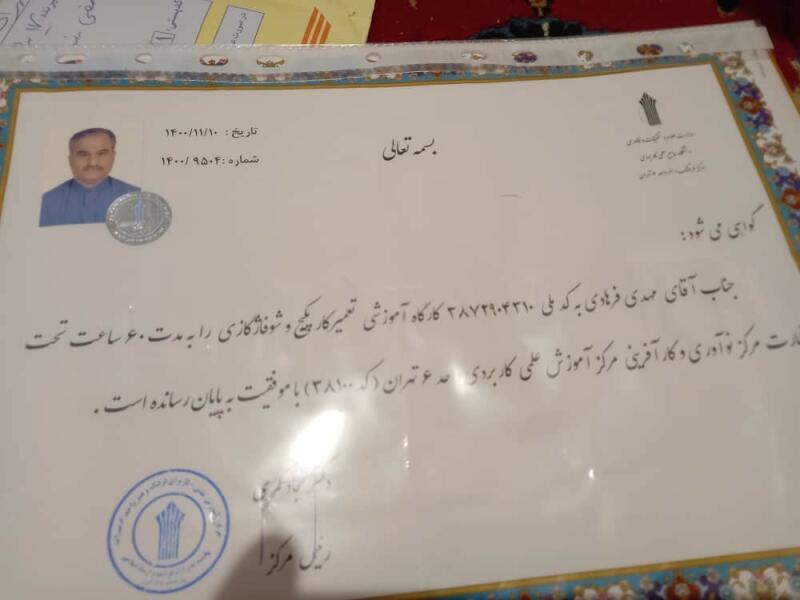 مشتریان بابت کیفیت انجام کار ، دستمزد منصفانه ، مهارت و تخصص ، رفتار محترمانه به مهدی فرهادی امتیاز مثبت داده اند.