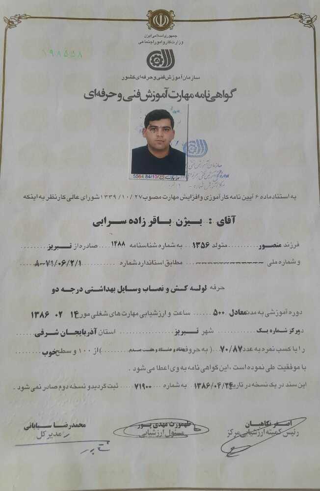 خدمت از ما احراز هویت شده خدمت از ما متخصص (دارای گواهی مهارت)